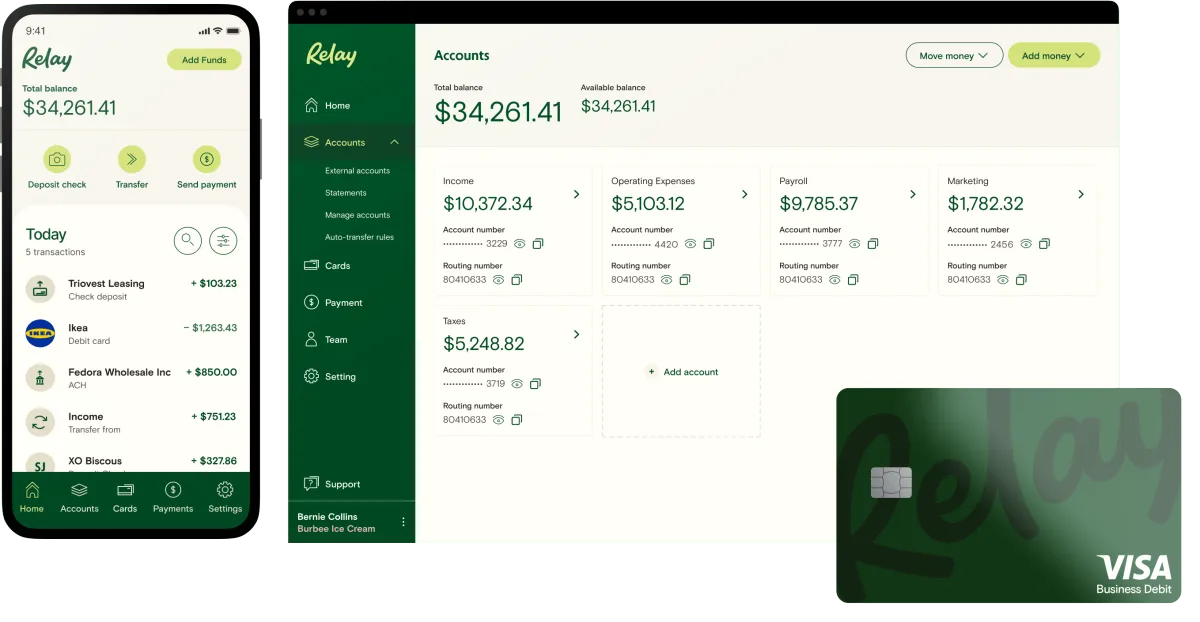 “Relay makes cash flow management so simple by allowing multiple accounts to easily be opened. It’s been a game changer for my business”